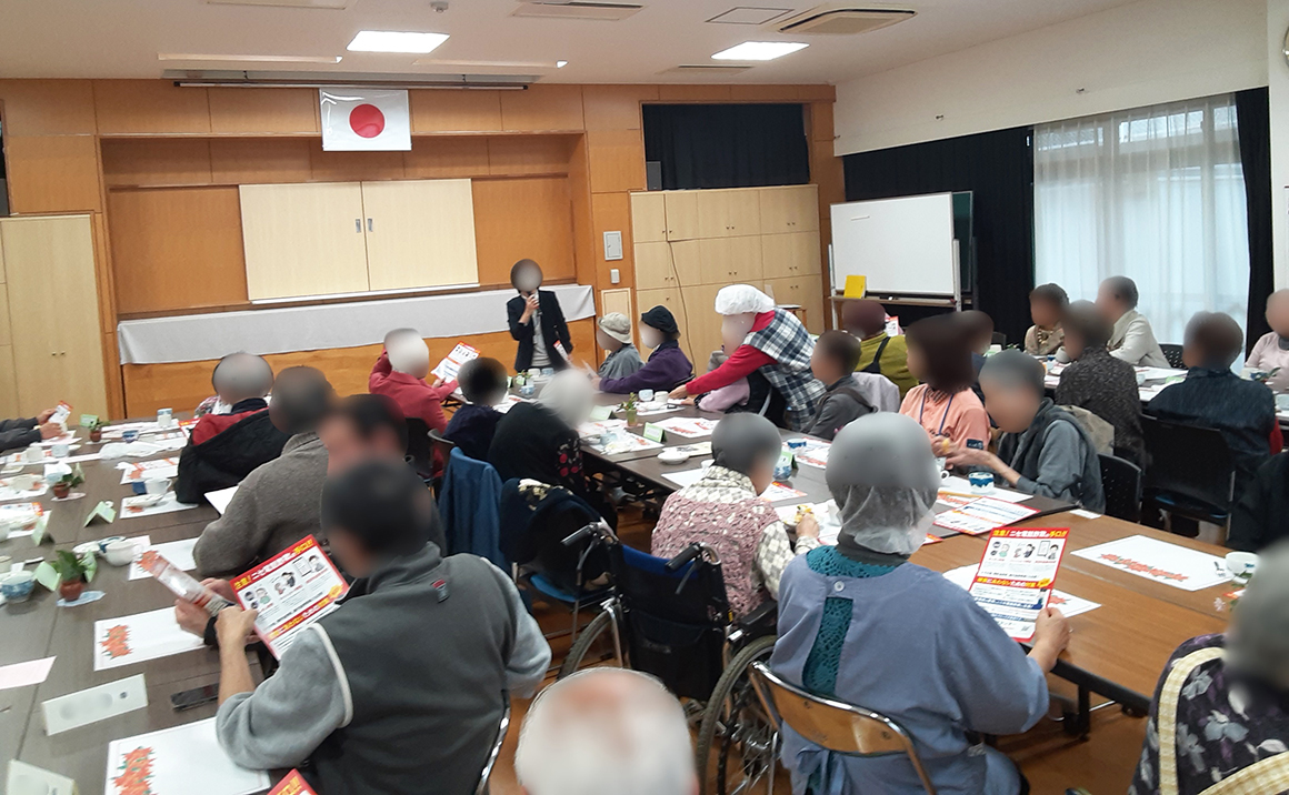 こんにちは!たのしい家七隈の広報担当の幸田です♥ たのしい家七隈では毎月恒例の公民会でのランチ会に参加してきました♪ 今月は、城南警察署の方が来られ警察官による詐欺防止の講習会がありました!