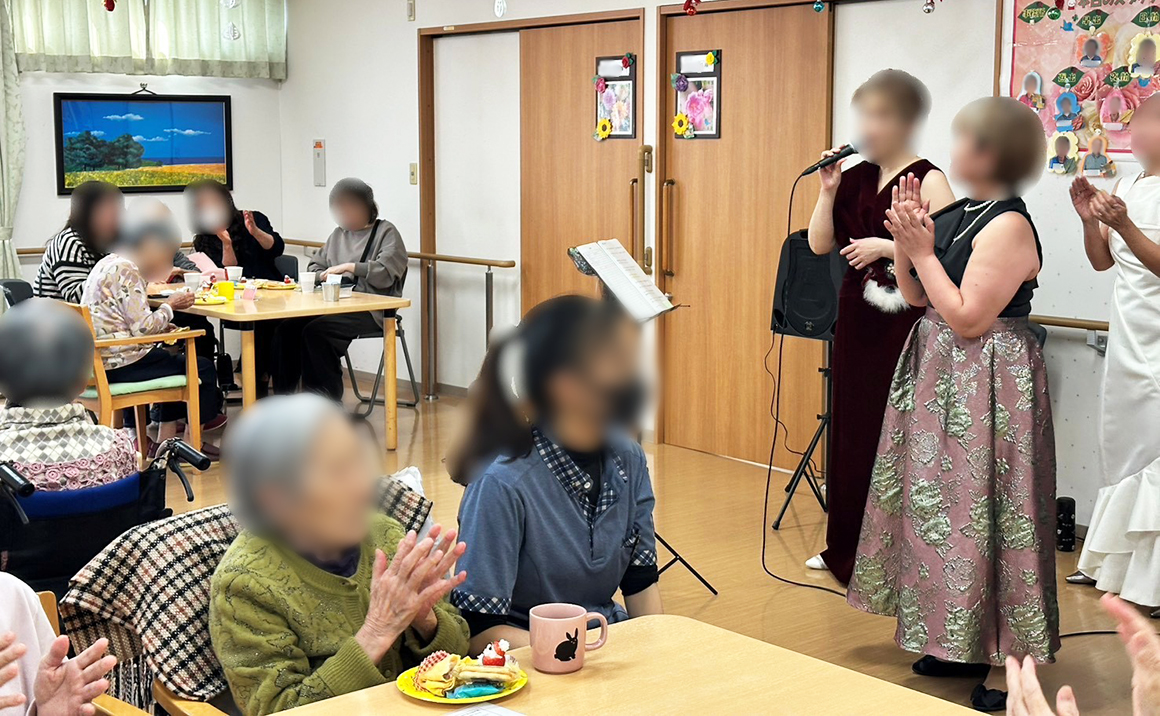 (ボランティアさんは入居者様のご家族様の紹介で来てくださいました!毎回大盛り上がりです)