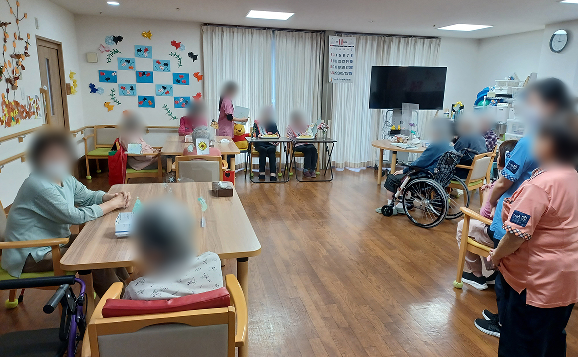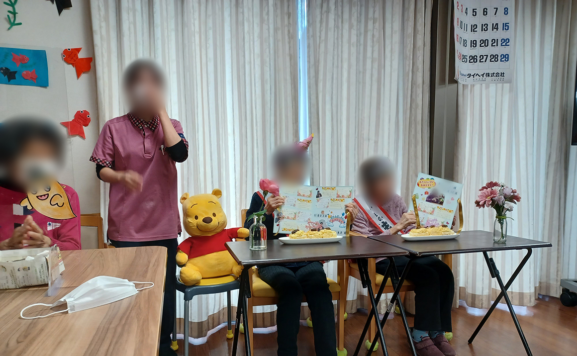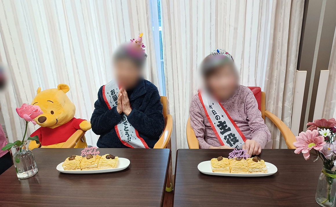 たのしい家西陣では一階の小規模多機能型居宅介護にて、11月生まれのお2人の誕生日をお祝いしました。
