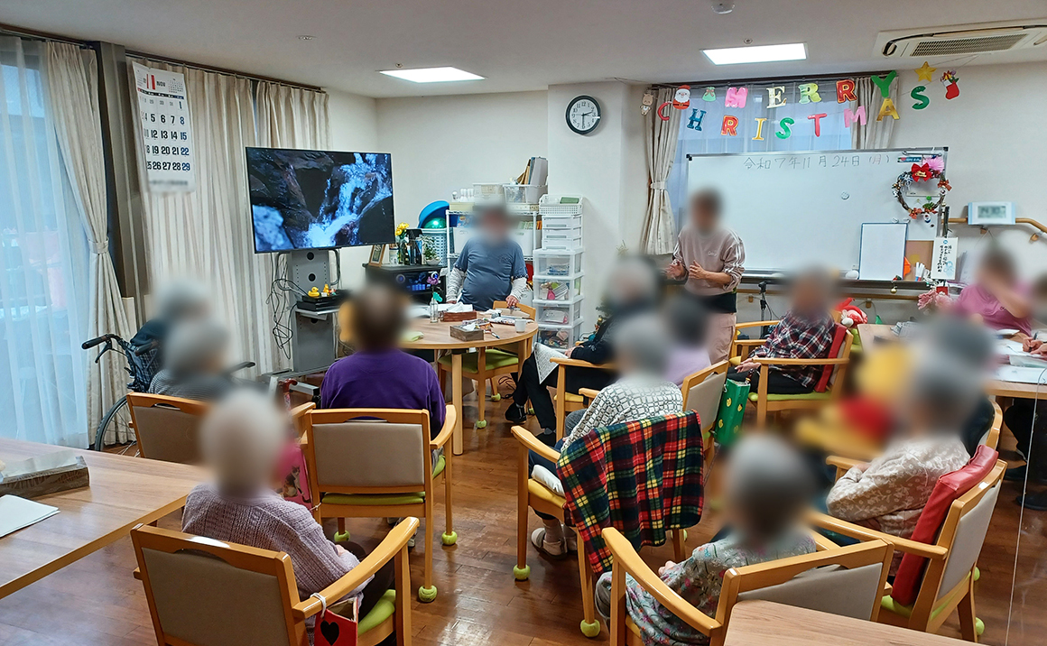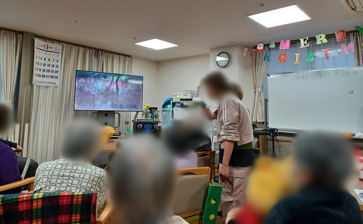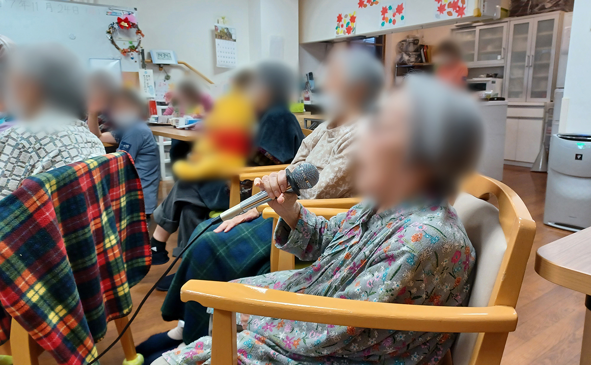 たのしい家西陣では1Fの小規模多機能でグループホームの入居様も交えてカラオケ大会を行いました。