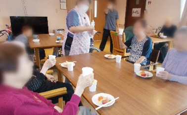 たのしい家鶴里では、20日に父の日の代替として居酒屋イベントを開催いたしました。 皆様で乾杯した後、ノンアルコールビールや焼き鳥等の串物を目の前で焼かせて頂いた他、刺身の花盛りや枝豆等、居酒屋のメニューを提供いたしました。 利用者様からは「1ヵ月に1回やって欲しい」との嬉しいお言葉も頂戴しとても好評でした。