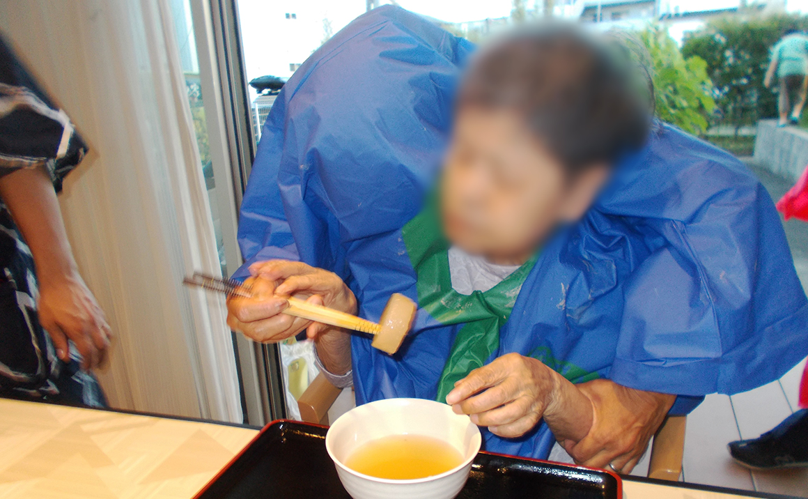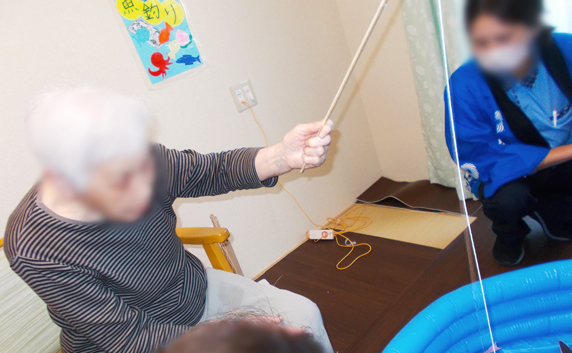 たのしい家鶴里では9日に夏祭りを開催いたしました。 今年度よりコロナ前と同様にご家族様や地域の方々をご招待し、みたらし団子やたません、焼きそばなどを提供したほか、魚釣りや輪投げを楽しみました。 夏祭りの最後には二人羽織を行い、ご利用者様とご家族様が協力しながらおでんやケーキを食されました。 今後も地域に向けてのイベントの発信や、ご利用者のみではなくご家族様にも参加いただき思い出に残るイベントを実施していきたいと思います。
