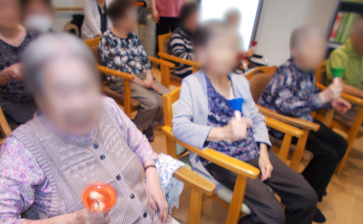 たのしい家鶴里では、毎月第2火曜日に音楽療法士の方をお招きして音楽療法を開催しており、7月は8日に開催致しました。 音楽療法では、季節に合わせた歌や、楽器の演奏、音楽に合わせて身体を動かして楽しい時間を過ごされました。 音楽療法につきましては、ご利用者様やご家族様の他、地域の方々にもご参加いただけるイベントとなっておりますのでお気軽に足を運んでいただければと思います。