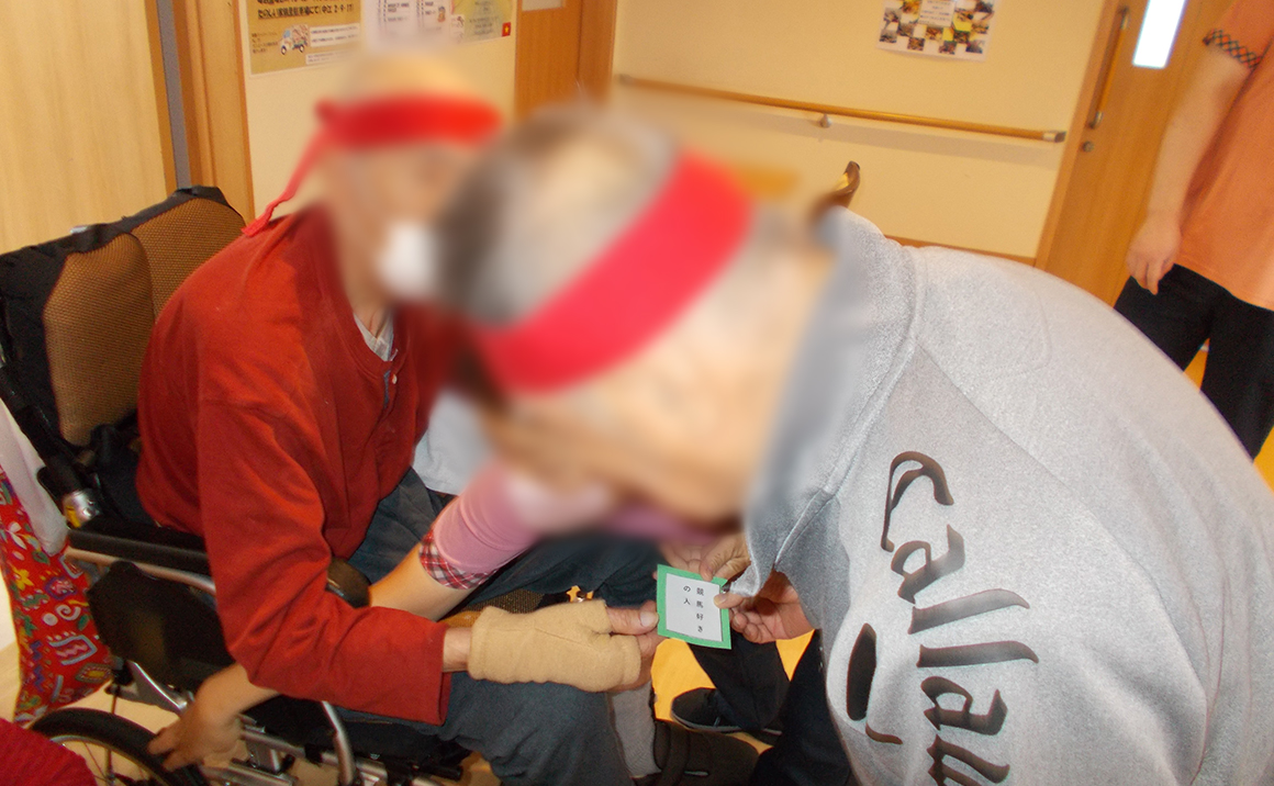 運動会では、玉入れや借り物競争、パン食い競争を実施し、玉入れでは負けまいと制限時間を超えても玉を入れようと必死になられる様子や、借り物競争では利用者様の趣味や特技に合わせたお題を用意し、選んだお題を探される際に、利用者様同士での会話や握手される様子等が伺え、終始笑いが溢れておりました。