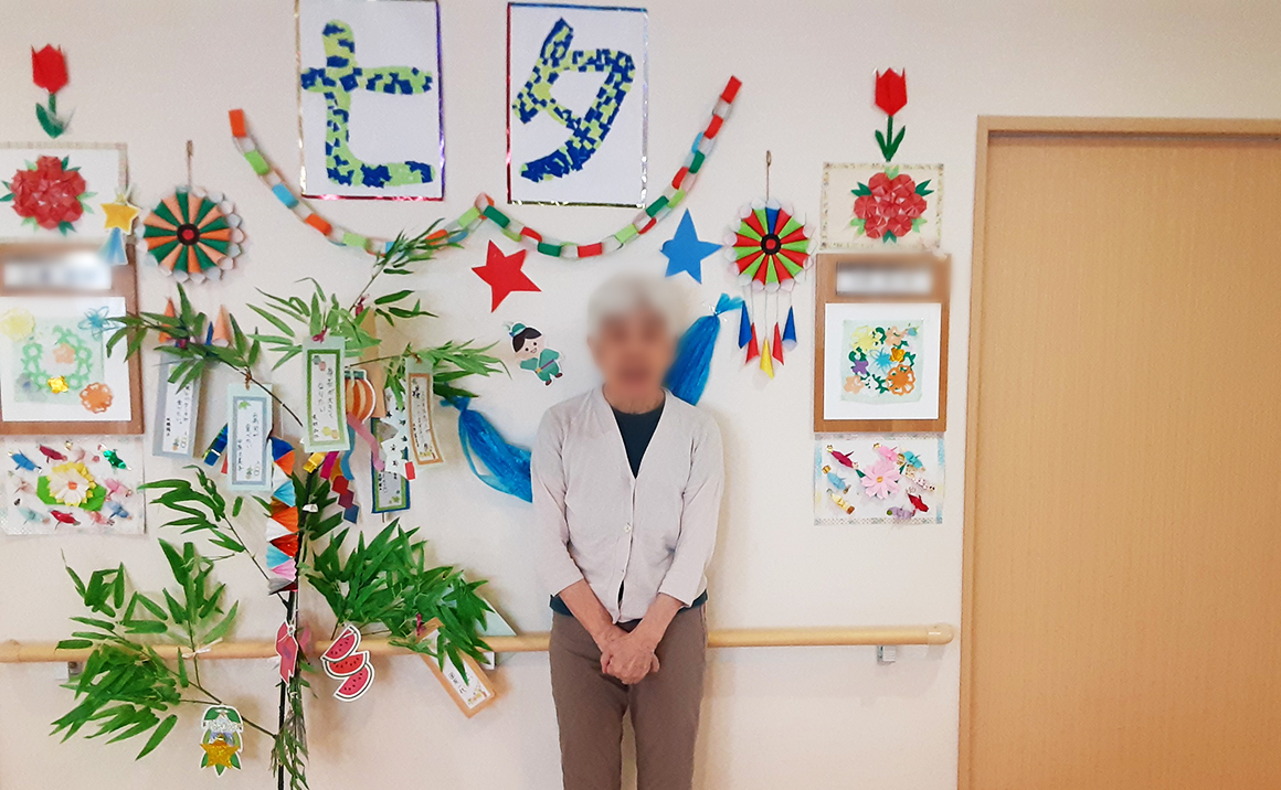 暑さが強まる時期となりましたが、皆様お元気でお過ごしでしょうか? たのしい家醍醐では、7月の行事として七夕イベントを開催致しました(*^▽^*)☆彡 入居者の皆様に思い思いのお願い事を短冊に書いて頂き、笹飾りに吊るしたり、 昼食に美味しいハンバーグお弁当を召し上がって頂いたりしました(´▽`*) まだまだ厳しい暑さの日が続きますが、熱中症などに気を付けて、皆様にお元気に 楽しく過ごして頂けるよう職員一同これからも努めて参ります。
