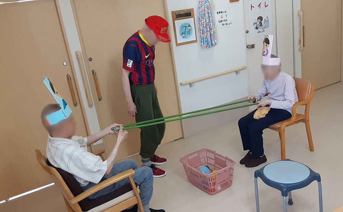 おやつには季節の果物スイカ入りのフルーツポンチを召し上がられ、その後はレクリエーションで