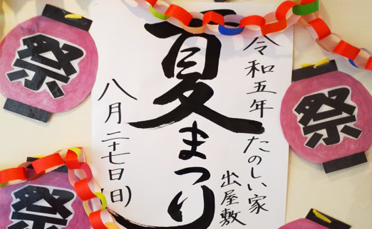 7月末にご入居者様の誕生日イベントを開催しおやつにケーキを提供し皆さんでバースデーソングを合唱しました。 8月27日には出屋敷夏祭りを開催予定しています。 盛大なお祭りにできるようにスタッフ一同計画しています。 きっと楽しい一日になることでしょう!! たのしい家出屋敷は随時施設見学やご入居者様の面会を受け付けておりますのでお気軽にお問い合わせください。