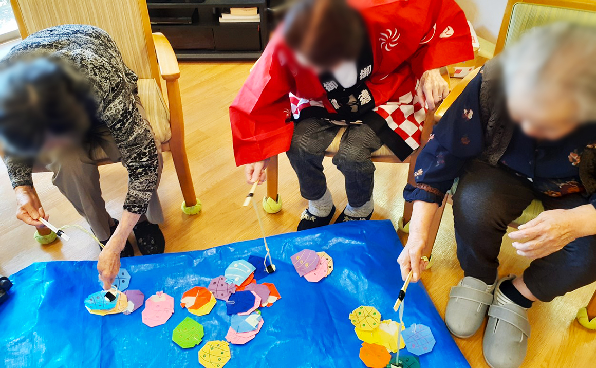 8月27日にご入居者様とスタッフで出屋敷夏祭りを開催しました。 スイカ割りやヨーヨー釣り、東京音頭の合唱といった夏の季節を味わえるイベントとなりました。 昼食は海鮮丼と唐揚げ、おやつには冷たいかき氷を提供しました。 この季節でしか味わえないたのしいひと時を皆さんと過ごせました。