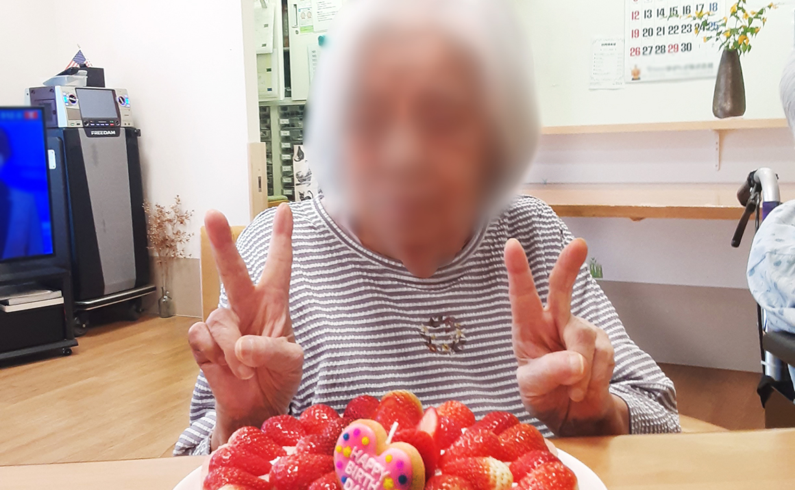 みんなで4月8日に97歳のお誕生日迎える方のお祝いをしました。