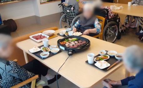 梅雨の季節となり雨模様の日も増えてきました。 たのしい家西九条では「 天候」に左右されず「健康」で過ごしましょうと言う事で 焼肉パーティーを開催いたしました♬ 「ご飯おかわり!」「もっとお肉焼いて!」「野菜も食べてね~」などなど… 賑わしいひと時でした。 もちろん ご利用者の皆様は 食欲旺盛でして、 あっと言う間にお肉が無くなってしまいましたよ♪