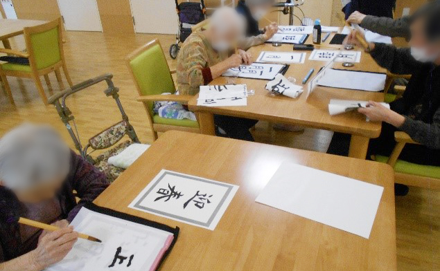 1月始めの書初めの風景です。「小学校以来だから書けるか不安だわ」「上手くかけるかしら」等、始まる前は不安な声がたくさん聞こえました!