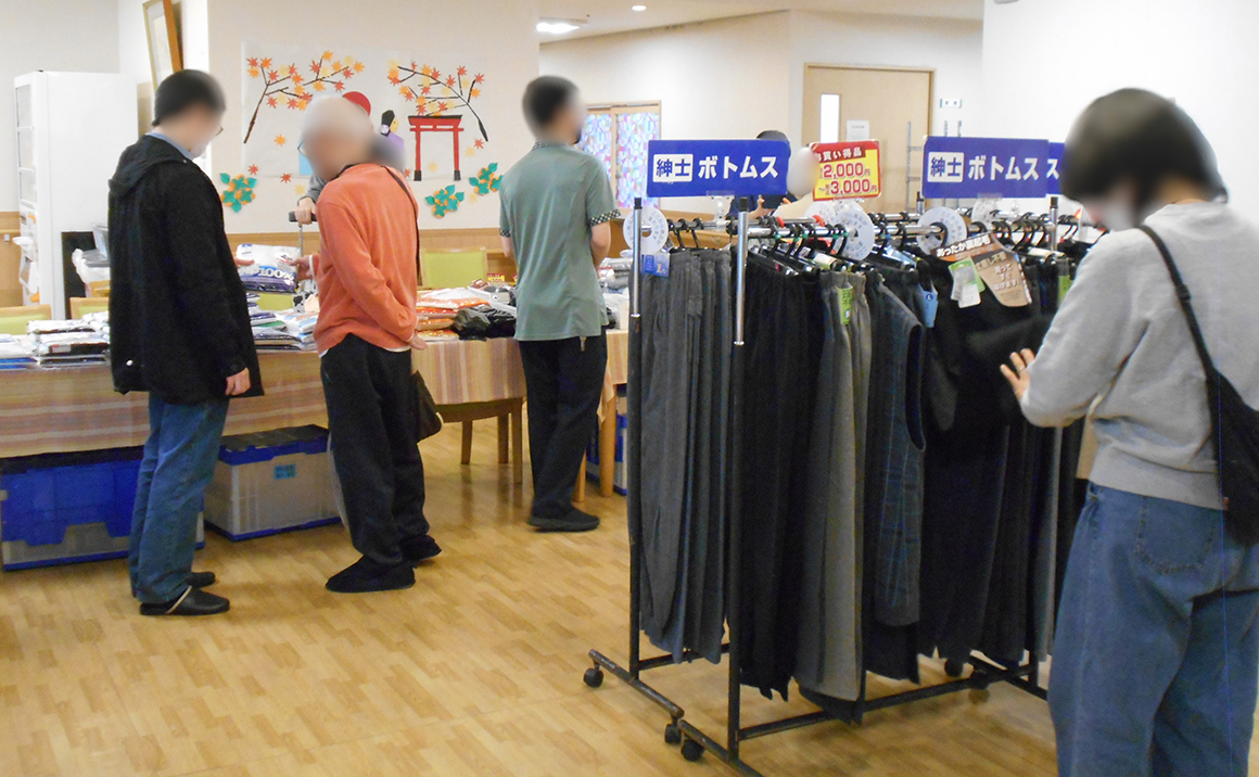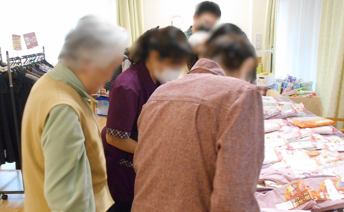 こんにちは プレザンメゾン東起です。 11月9日日曜日、施設がデパートになりました。今回は秋・冬物の展示会です。ご家族と一緒にお買い物をされたり、スタッフと一緒に買い物をしたり、それぞれに 欲しい物、興味のある物をゆっくり見てお買い物を楽しまれました。 あいにくの雨でご家族の面会が少なく少し寂しかったですが、好評でした。次回は春にお願いします。