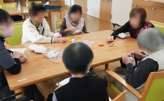 こんにちは プレザンメゾン東起です。 今年初めての「ハッピータイムプロジェクト」です。 このプログラムは乳癌で乳房を切除された方の為に手つくり乳房パットを作り、病院へ寄付する取り組みです。 細かく丁寧に縫った物に綿を詰めて完成です。「人の役にたっている」「誰かの力になっいる」とてもやりがい、生き甲斐を感じられると入居者様も感謝されています。 裁縫が得意な方が少ないですが、少数精鋭で今後も頑張ります。