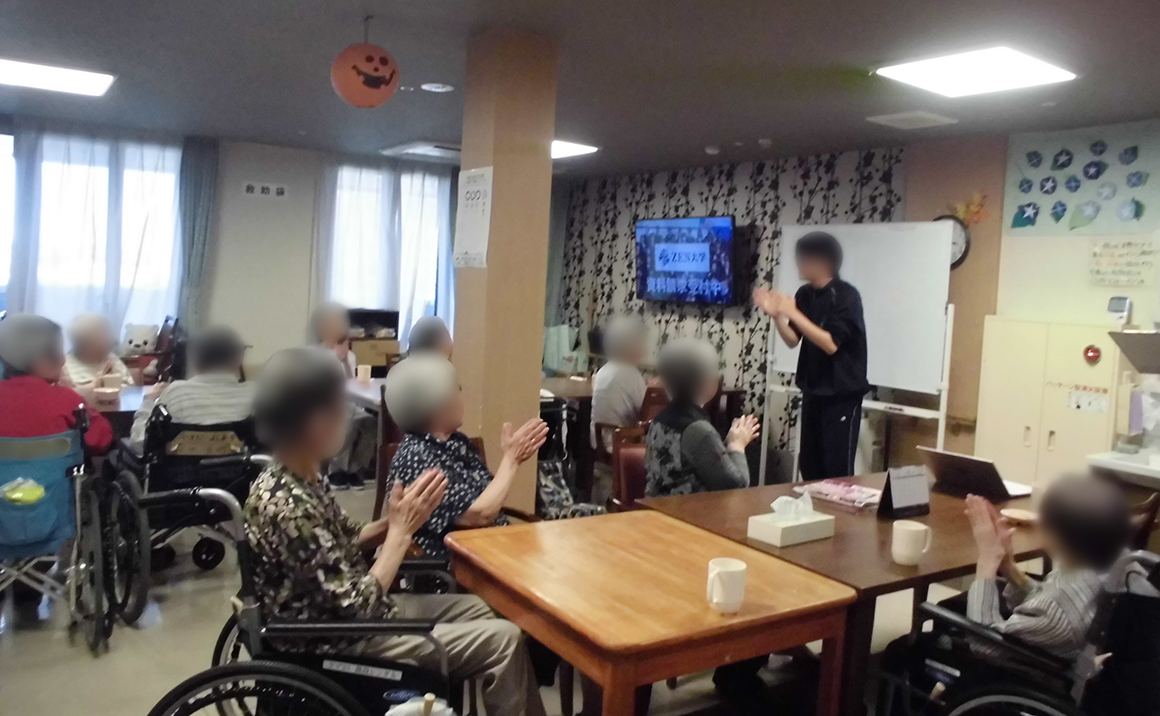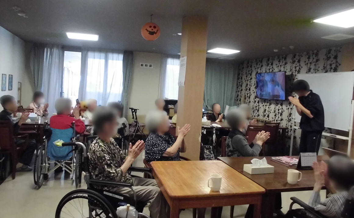 ご利用者様は、孫を見るかのような暖かいまなざしで「がんばれ」と声援。