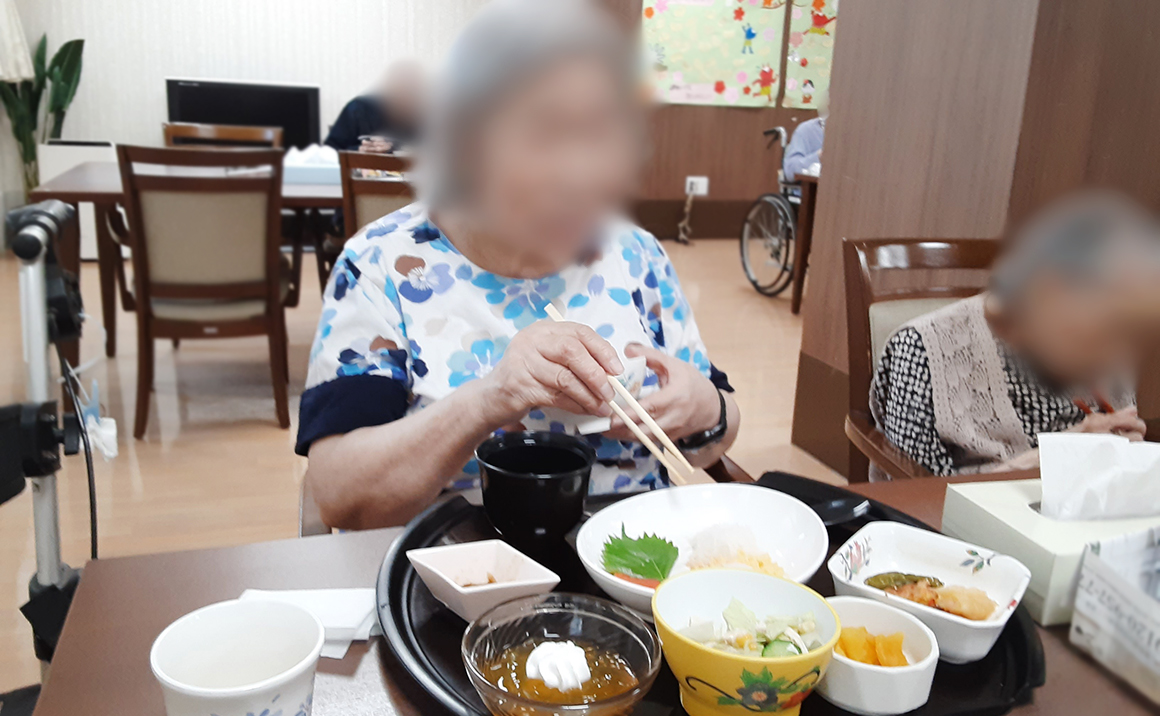 今月の逸品料理はお刺身。 いつもよりもご希望者が多かったですね。 メニューは、 ・愛媛県産マハタと高知県産本マグロの刺し盛り ・ミニ天ぷら ・バンバンジー風サラダ ・オレンジゼリー ・漬物 ・赤出汁・ご飯 です。
