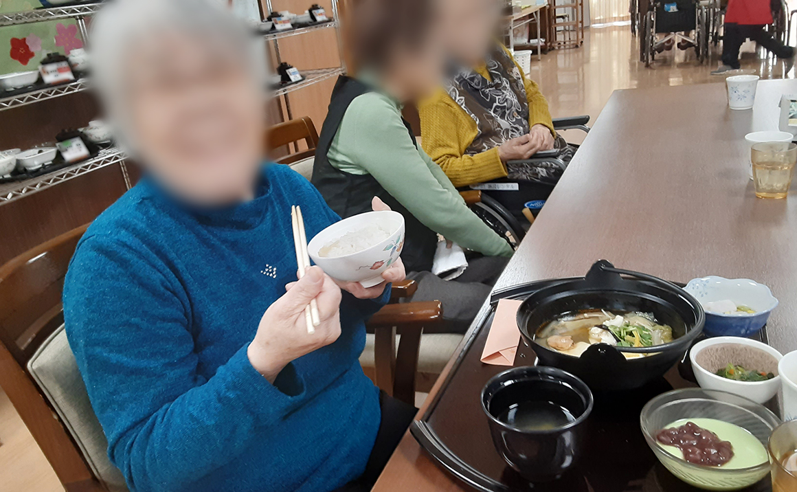 コクのあるあん肝とヘルシーなお野菜とで、皆様とても満足気な笑顔。 また、器もお鍋を使用し、本格的な和風料理店に来た雰囲気を醸し出していました。