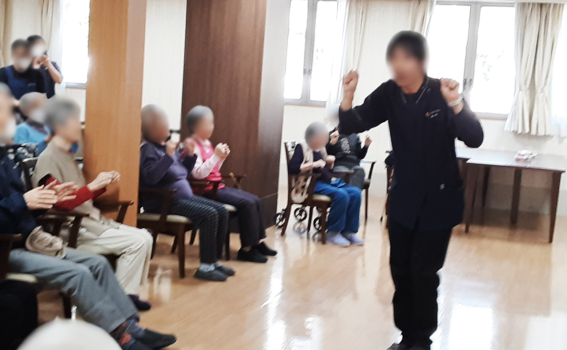 イケメン先生が来るとあって、ご利用者様の皆様とても嬉しそうでした。 グー・チョキ・パー体操や「今日は何の日?」とか「4月の祝日はなんでしょう?」など 少し頭を使った問題などを出して、皆様を悩ませていましたが、 なぜかとても笑顔がこぼれていました。