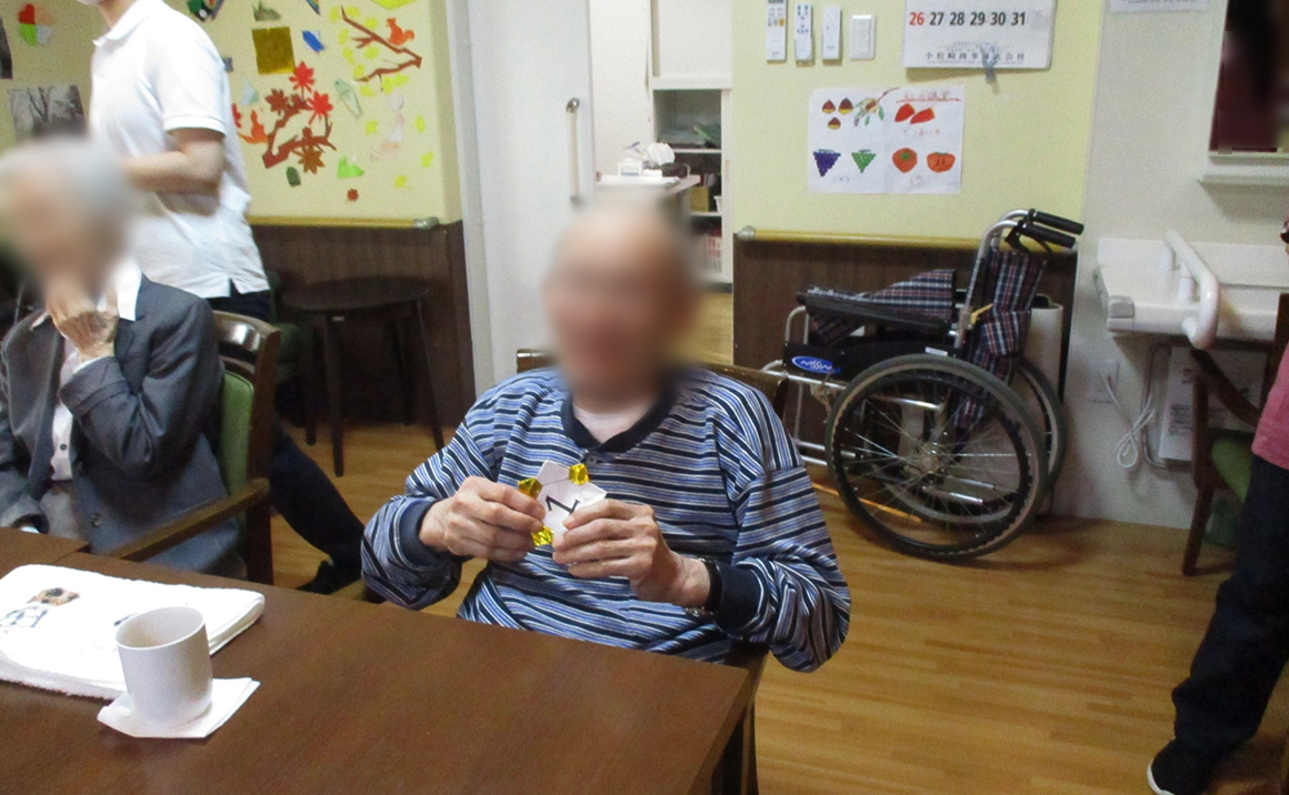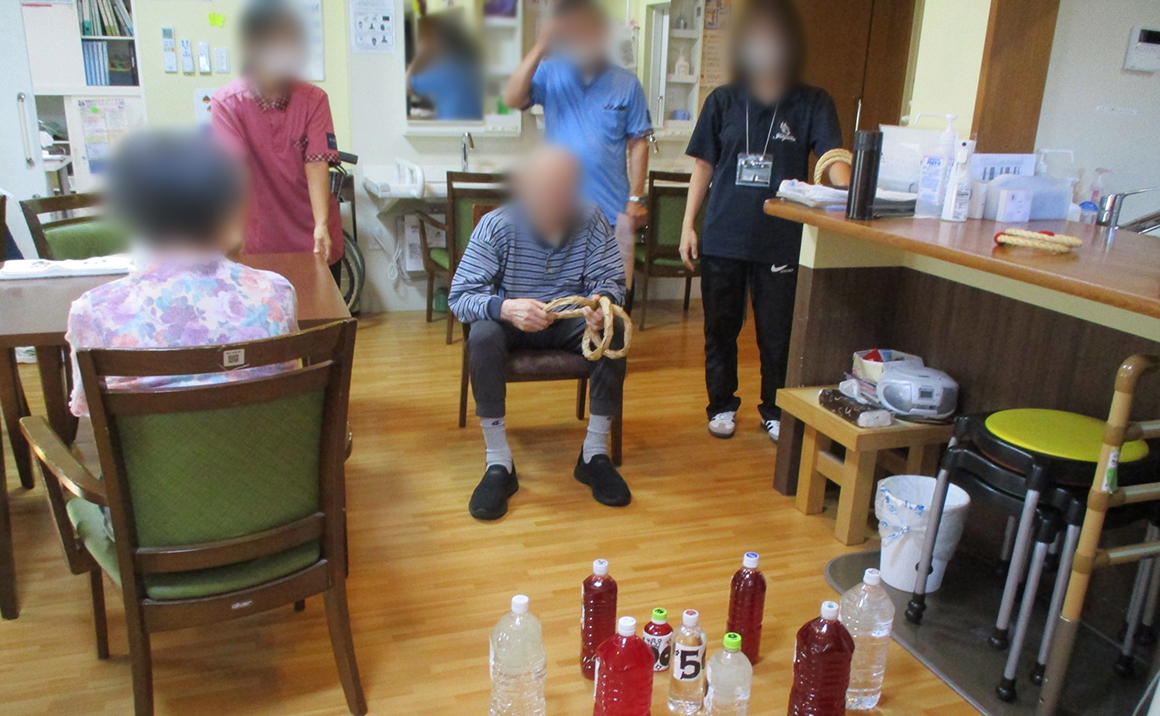先日、介護等体験に来ている学生さんの企画で輪投げ大会を開催しました! 学生さんの応援の掛け声もあり大盛り上がりでした。 優勝者の方には手作りのメダルを贈呈させて頂きました。