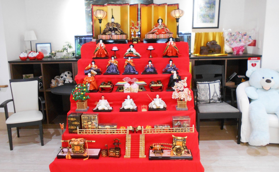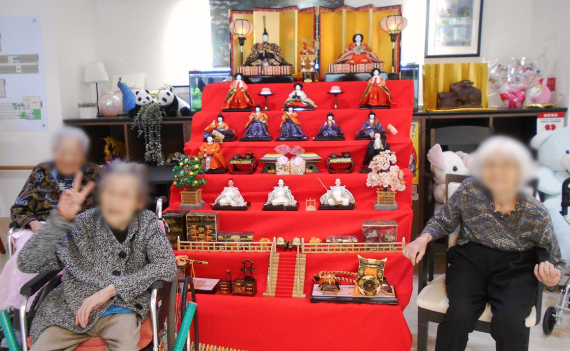 7段飾りのお雛様。ご利用者様も会いに来てくださって(^^♪