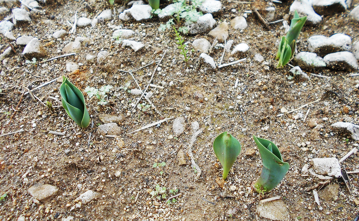 皆様、覚えていてくださってますでしょうか( *´艸`) お庭に植えたチューリップ🌷芽が出ました❣