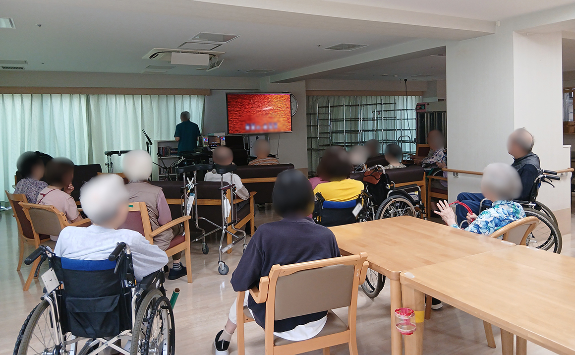 急遽にもかかわらず、 スタッフの動きは迅速で、 入居者様も「久しぶりやぁ」と続々。 集えや、歌え。 大盛況!