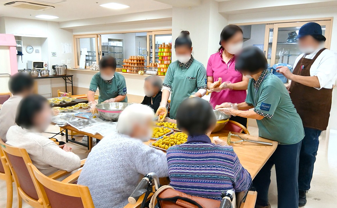 お団子が増えるように 入居者様も「手伝うわ」と、 有志が増えていきました。