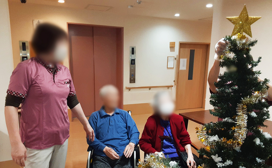 毎年恒例、各フロアーでご利用者様と一緒にクリスマスの飾りつけを行いました。