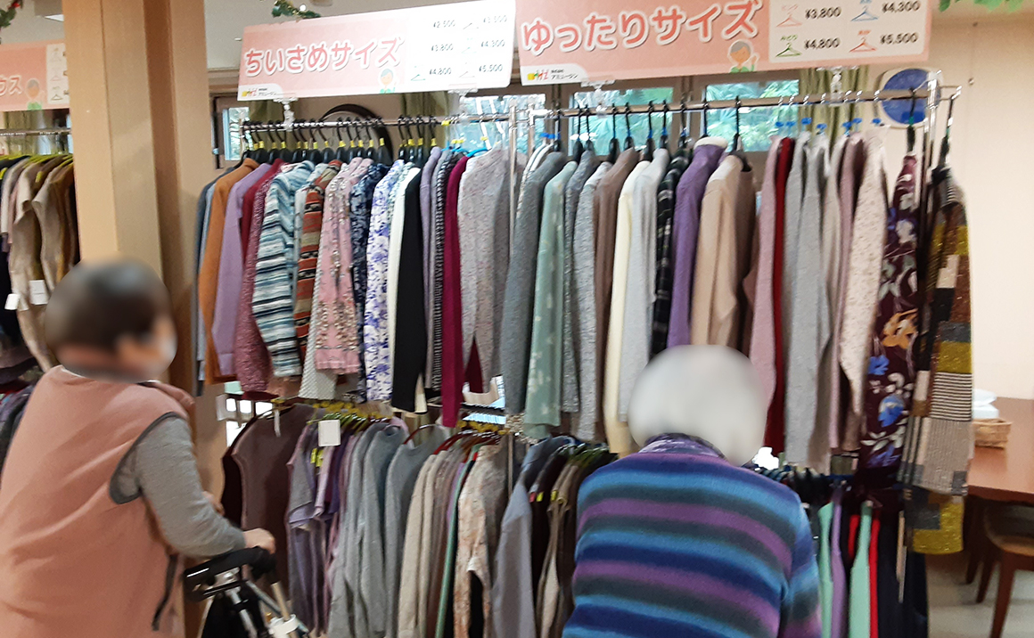 恒例のお買い物レクレーションです。 あらかじめ、ご家族様より承諾を得た金額内で購入できます。もちろん買わなくてもOK。 皆さま、必要な衣類等をまじめな表情でお選びになられているのが印象的でした。 いくつになられても新しい衣類は気分がいい様子でした。