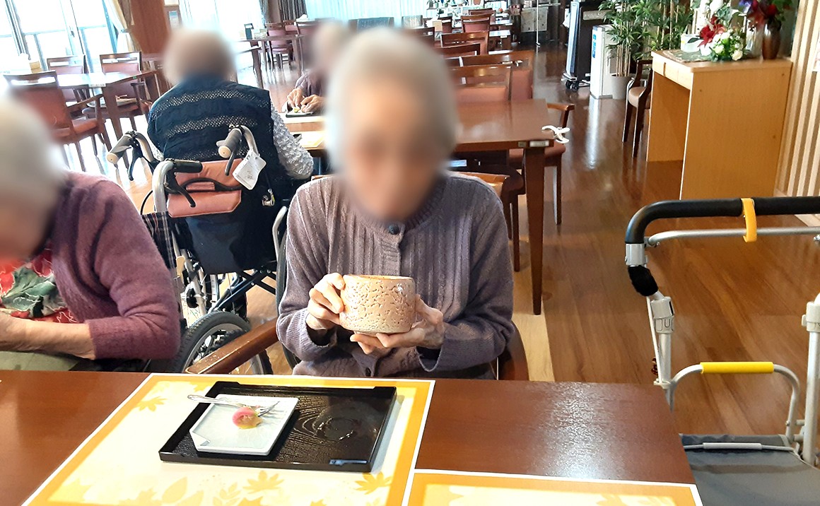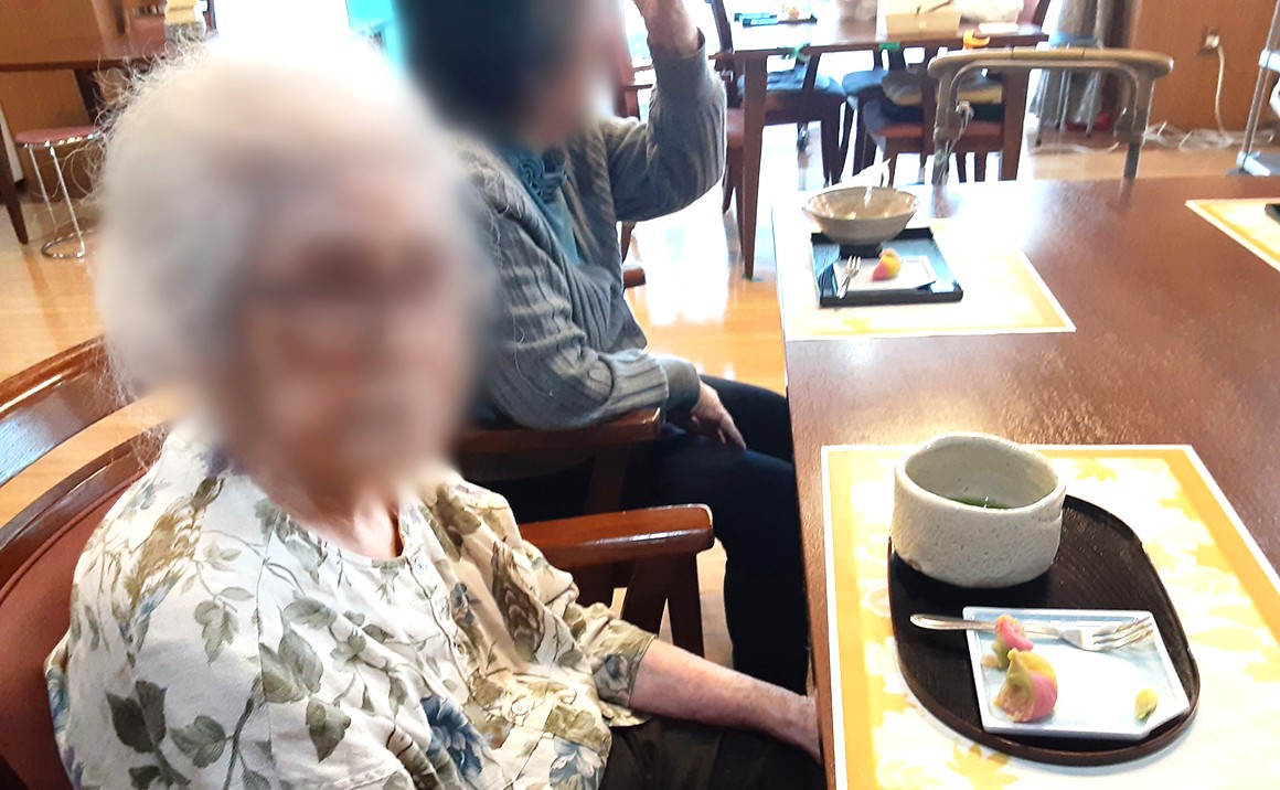 生菓子がお好きな方は、入居者様または職員が立てたお抹茶と生菓子を召し上がっています(^^♪