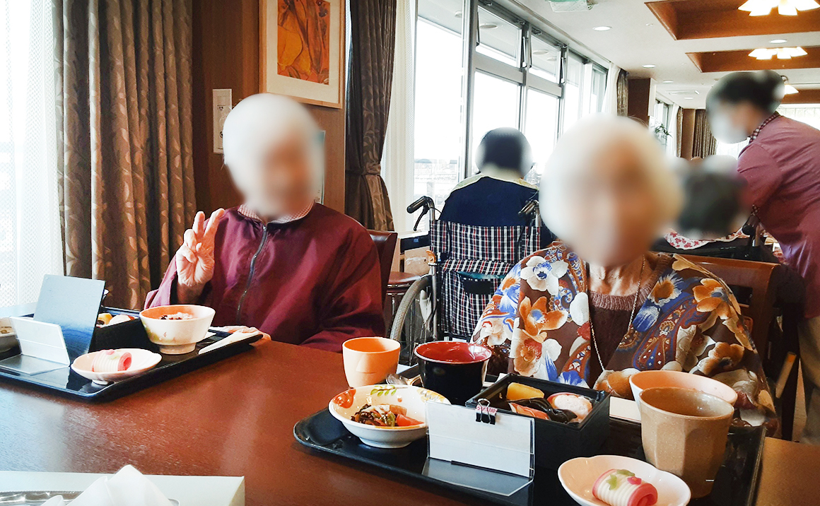 今回は 台東谷中の皆様が揃って 元旦のおせちを楽しまれたご様子です。 3枚目の写真は、365日 食事をつくってくださる厨房のスタッフです!(^^)! 本年も美味しい料理をよろしくお願いいたします。
