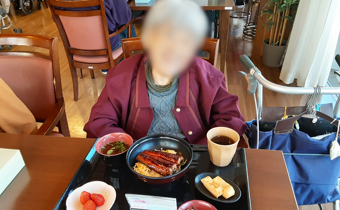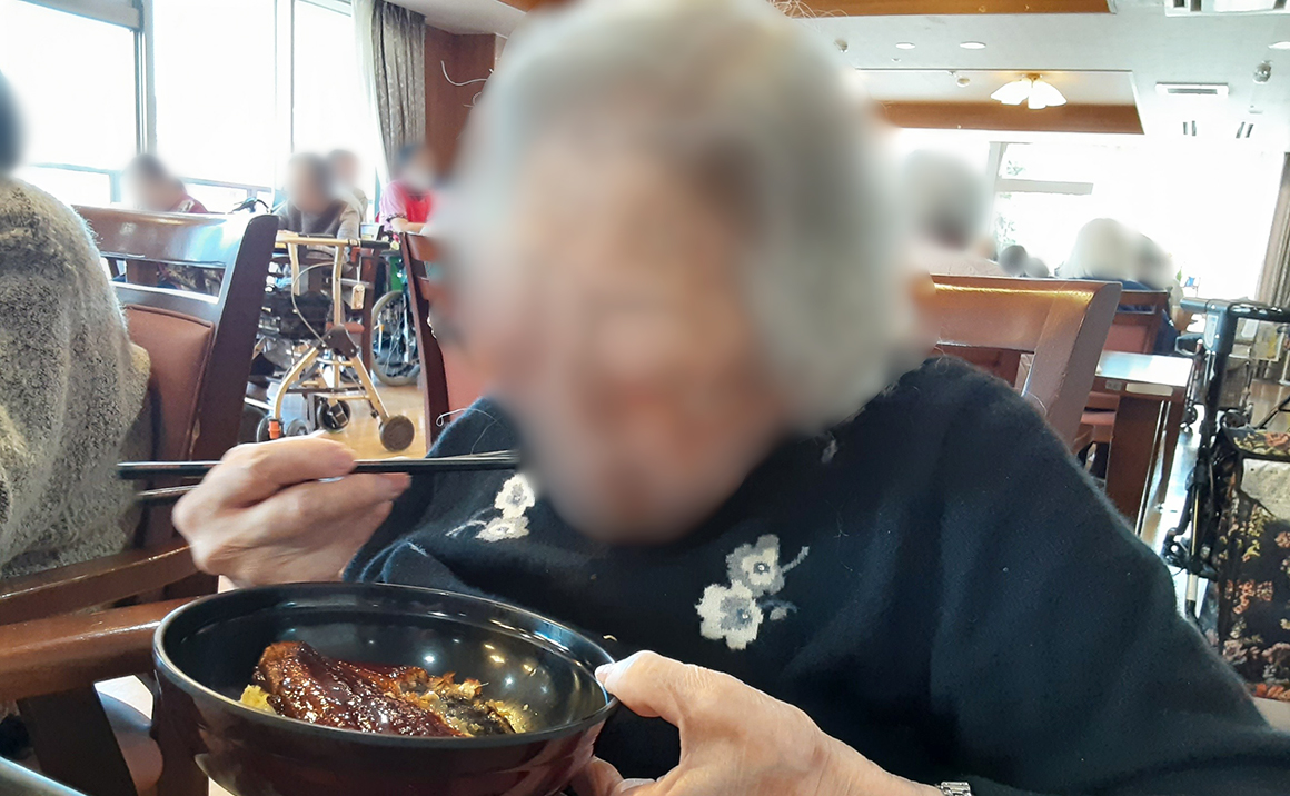 皆様 こんにちは!(^^)! 谷中は梅の花が綺麗に咲いており、桜の花のつぼみも日に日に膨らんできました。 今年もお花見に行けるのを、楽しみにしています。 今回の厨房企画のイベント食は、うなぎ丼でしたあ!(^^)! やっぱりうなぎは大人気で、カメラのポーズもハイ!バッチリ!です。