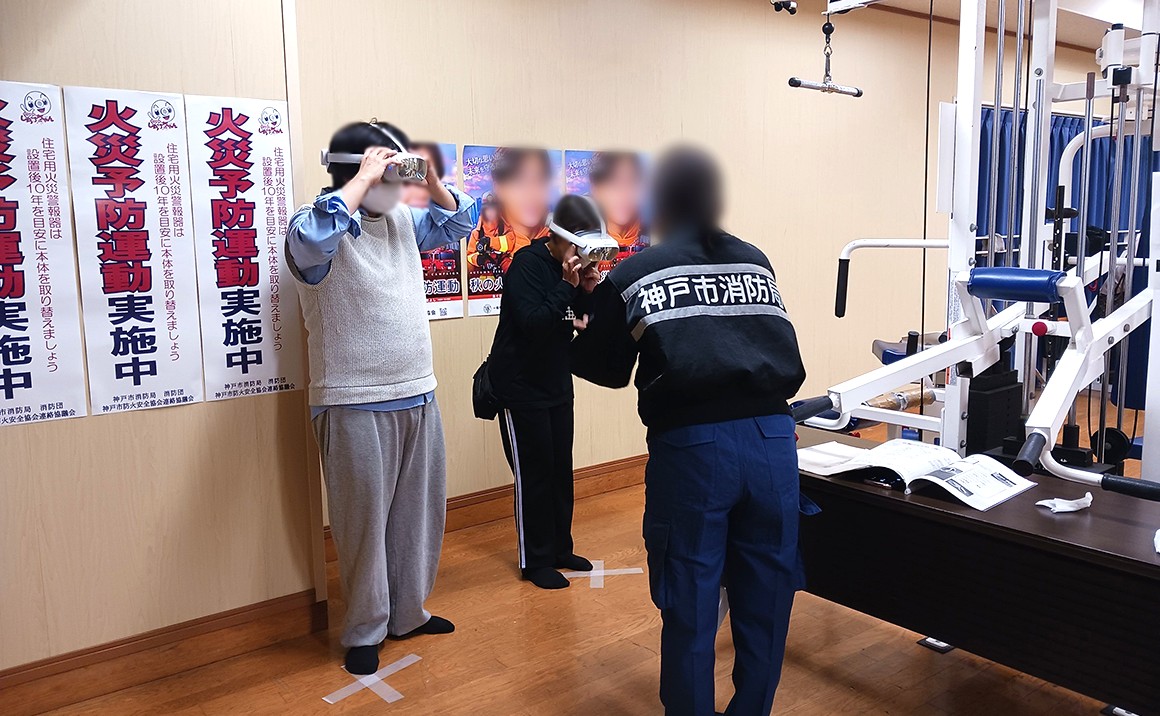 火災報知機の扱い方や消火器での消火訓練や最新のARによる煙体験など受けてきました。