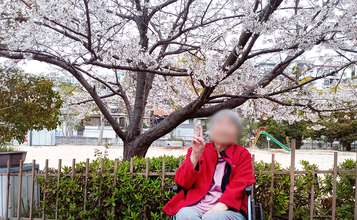 たのしい家西舞子では、4月行事として近くの公園に桜を見に行きました。 まだ肌寒い日でしたが、入居者のみなさまは「もう春やね~」、「やっぱり直接見ると、元気になるね」 と喜んでいただけて、職員もお連れできて良かったと思った一日でした。