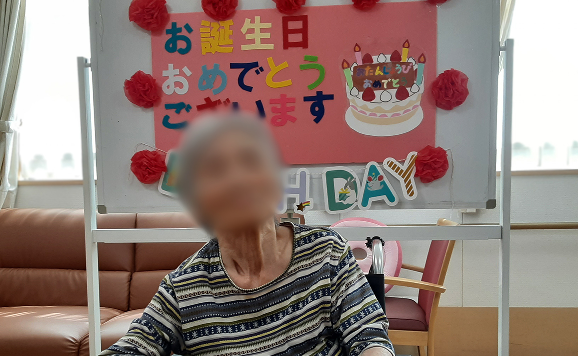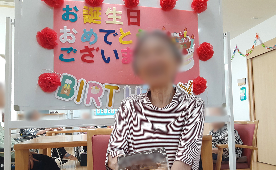 今月は4名様がお誕生日を迎えられました。 午後より誕生日会として職員と他利用者様で歌のプレゼントを贈りました。 その後、皆様でケーキを召し上がられております。 誕生月の利用者様にはメッセージプレートをお付けしお祝い致しました。