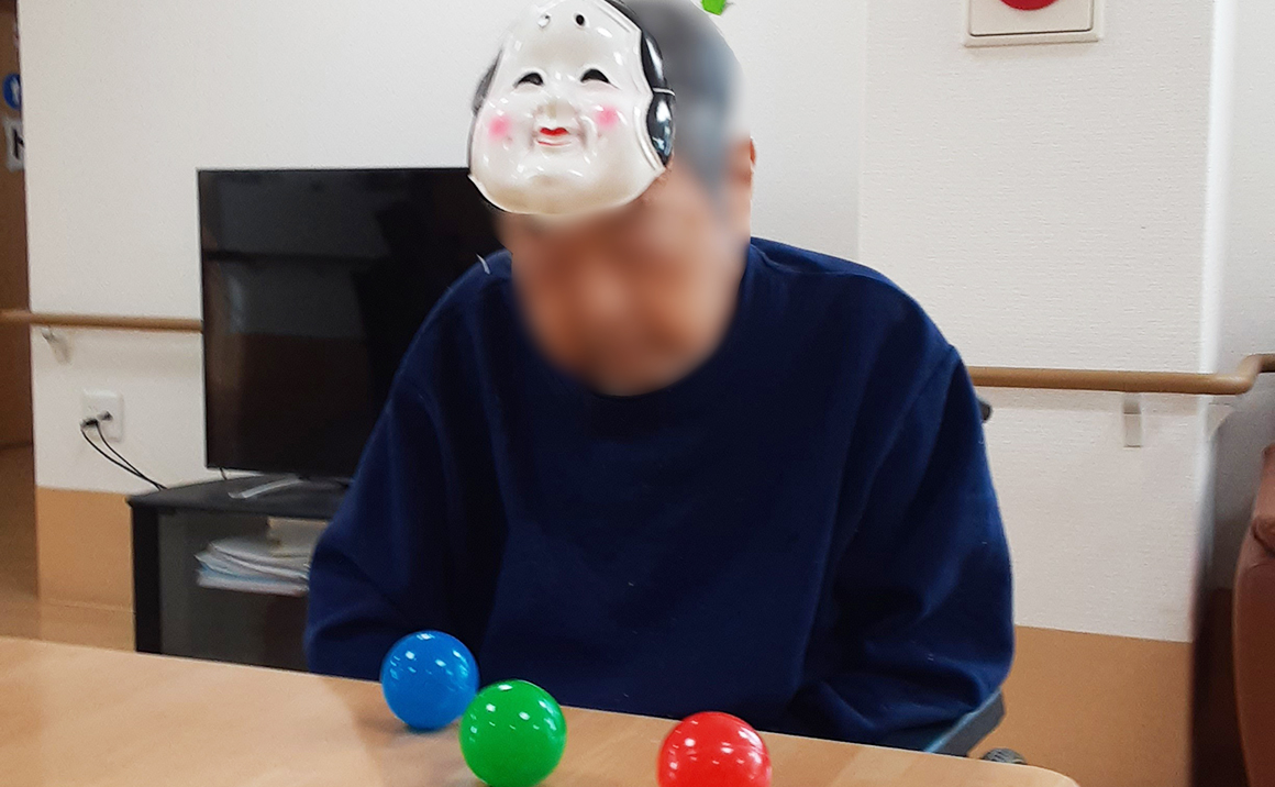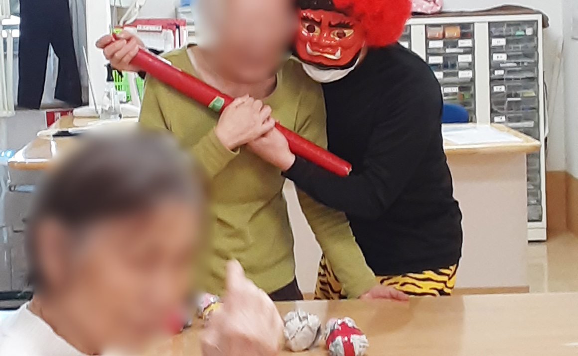 こんにちは! 節分レクの写真がたくさんあるのでご紹介させてください。この写真はグループホーム3Fです。 豆まきならぬボール投げを行いました。「鬼は外~福は内~!!」と鬼も登場し思いっきり投げていただきました。 「わはははは」と大きな声で笑って頂き、今年も笑顔絶えない毎日を過ごしてもらえるように努力していきます。 2月はまだバレンタイン作りや施設合同レクも行う予定です。またアップ出来たらと思います。
