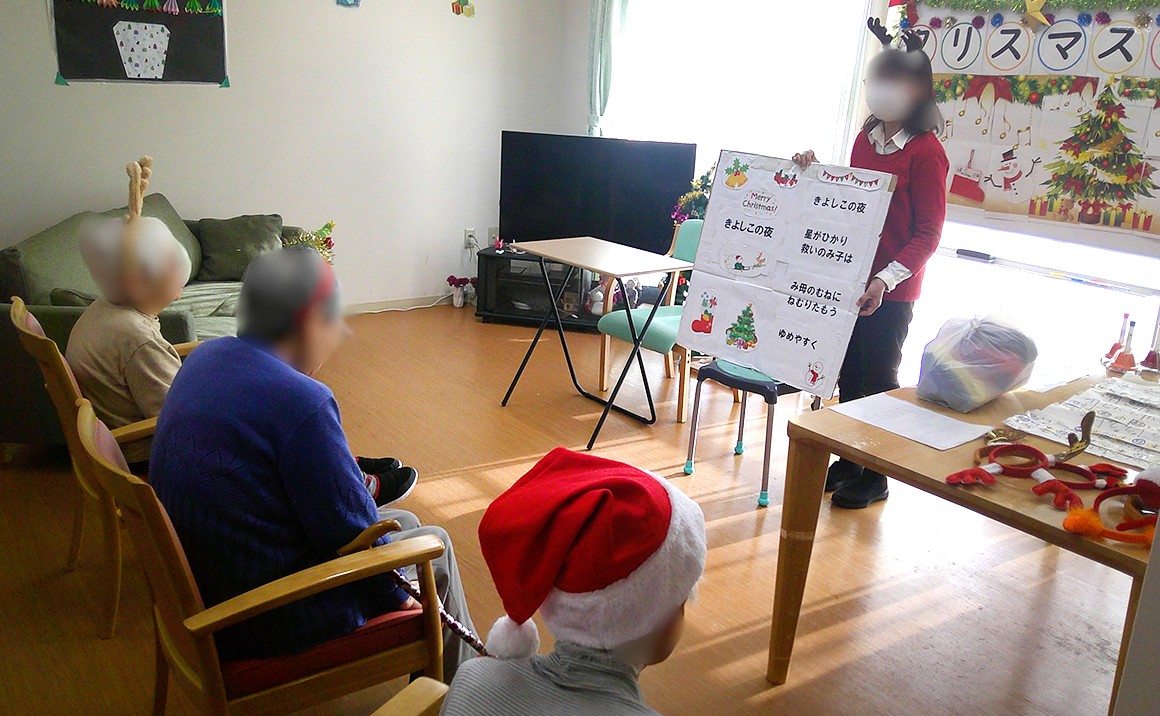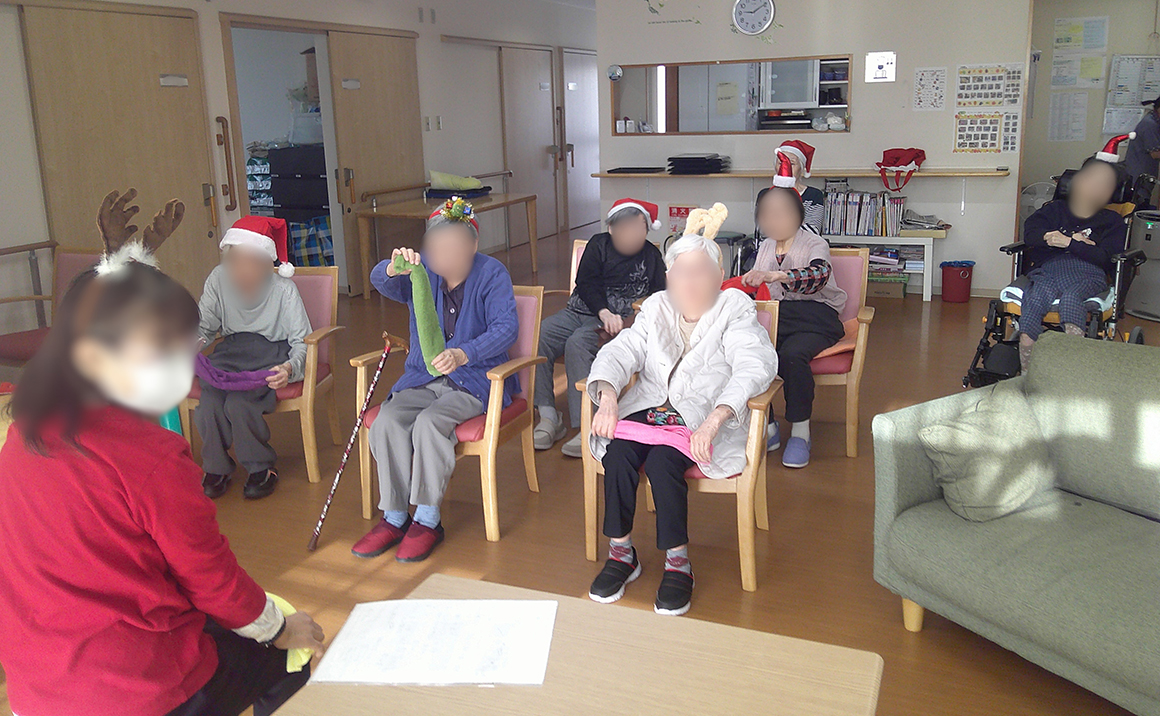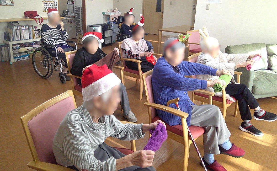 12月10日2階でクリスマス会をしました。 クリスマス会ということで、ご利用者様も職員の方々もあさからソワソワ 午前中にはボランティアの方が来てくださりました。 演奏をしてくれたり、皆さんでクリスマスソングを歌いました。 昼食はご利用者様からの要望もあり寿司をいっぱい頼みました! もしかしたらこの時が一番盛り上がったかも…(笑) 午後には職員主導で体操やクイズなどをしました。