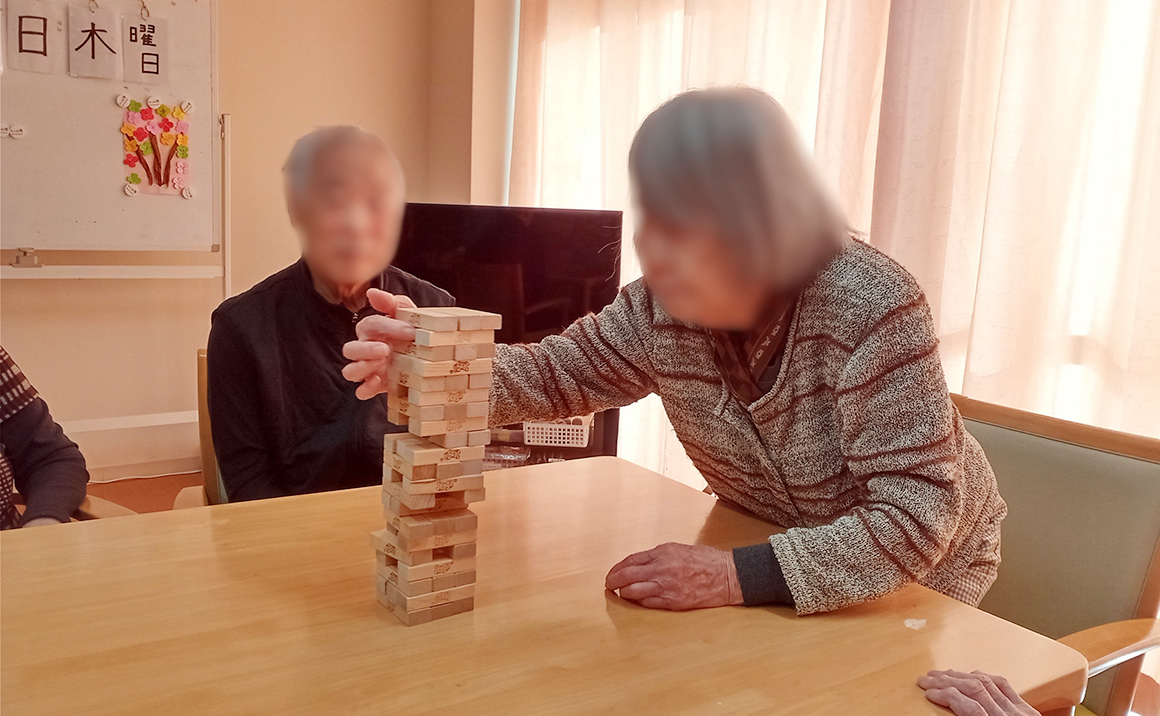 ジェンガが結構受けがよく「両手使ったらあかんよ!」とか崩れてしまったら「あー!あっはっは」ととても盛り上がっております。
