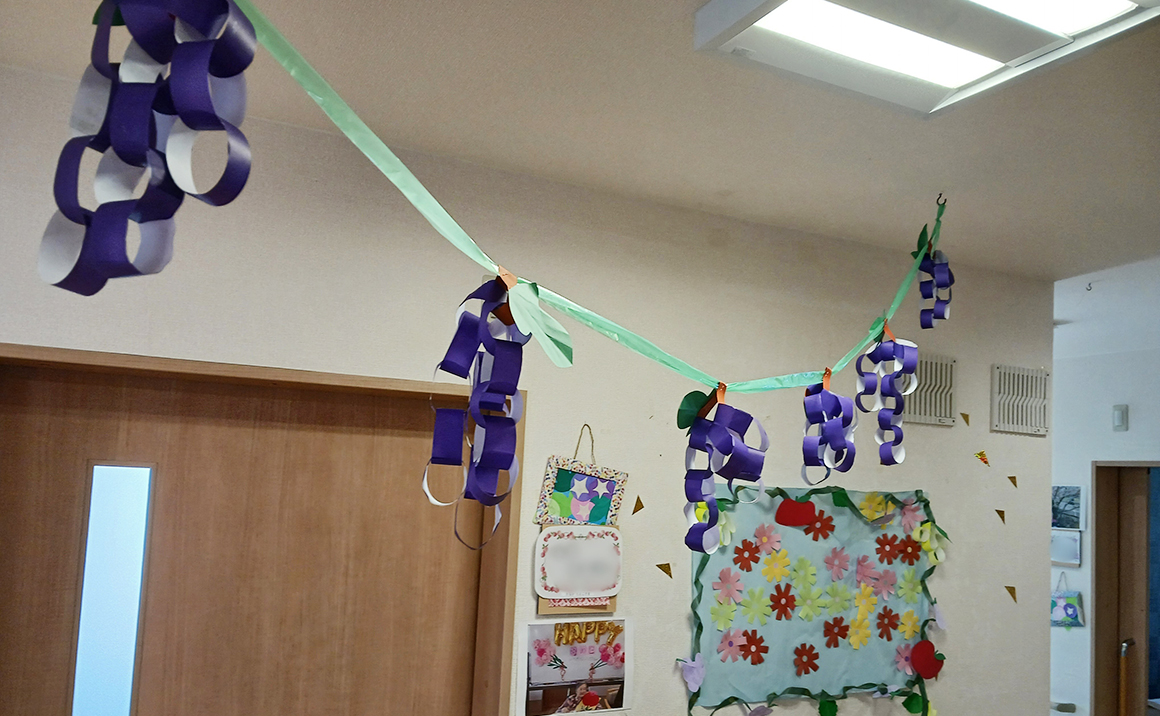 たのしい家山科音羽では季節にあった行事や食べ物等をご利用者様と一緒に装飾しております。