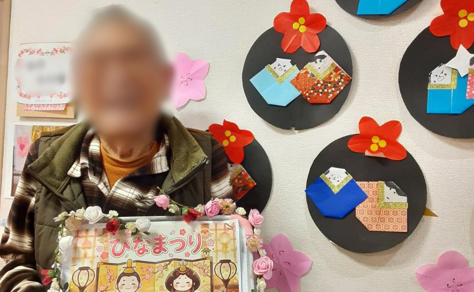 3月3日はひな祭りということで施設内でもひな祭りイベントを実施しました。 手作りのひな人形と写真を撮ったり昼食にはちらし寿司、おやつにはひなあられの提供 といった豪華な一日となりました。 皆様の笑顔が素敵でした!!
