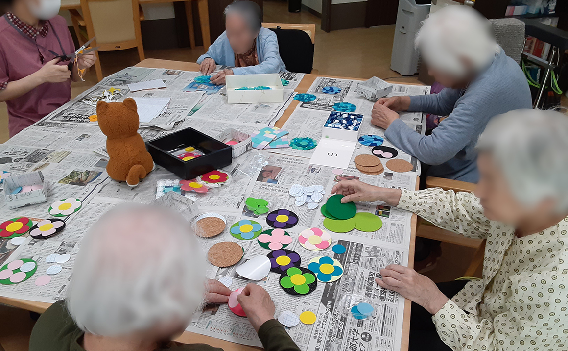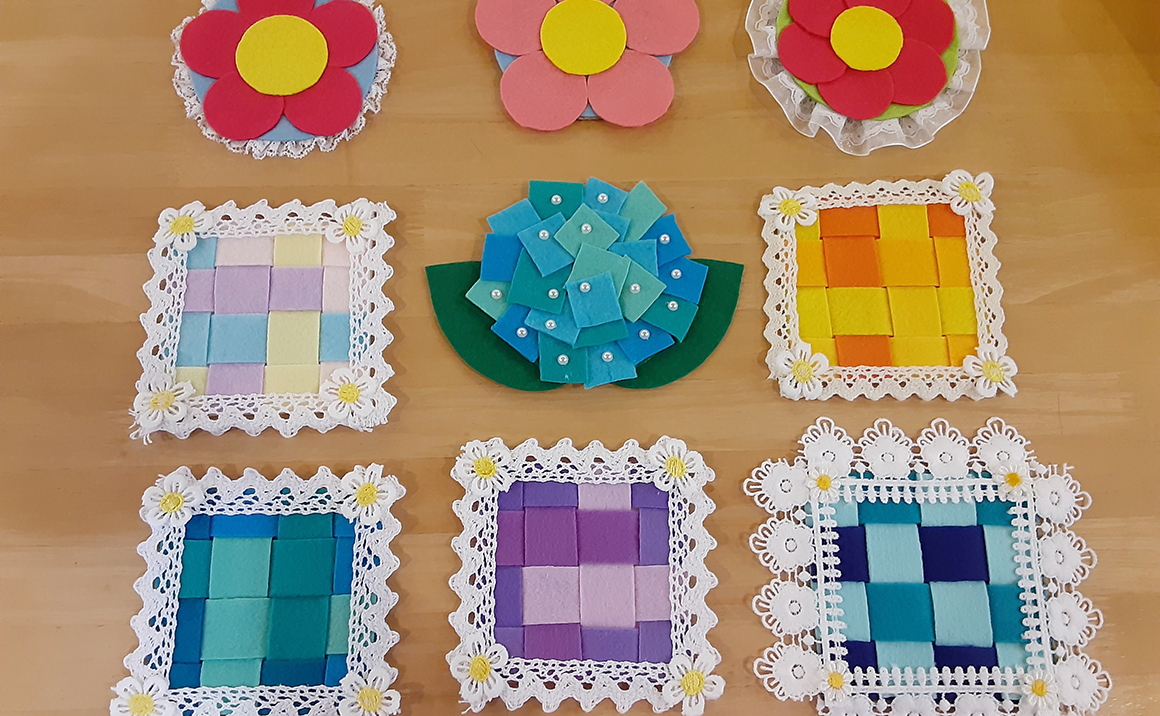 伊丹市のグループホームたのしい家伊丹堀池です。 今回は、コースターづくりの様子をお伝えします。 フエルト・レース等を使用して色々な形のコース-タを作って下さいました。 最初は「これは、どうするの?」「お姉ちゃん!!」と スタッフを呼ばれる事もありましたが、慣れてこられると黙々と取り組んで下さいました。 皆さんの力作をご覧下さい。 これからも、たのしい家伊丹堀池から情報を発信してまいります。