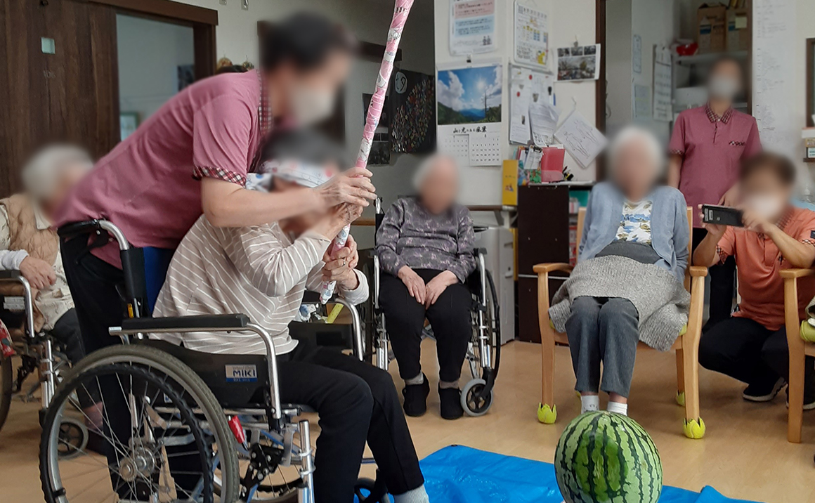 一階の利用者様はスイカ割りの後、たこ焼きパーティーです!!