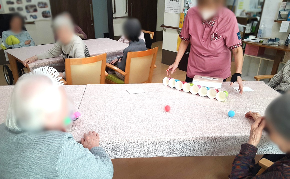 ケーキを召し上がって頂いた後は、ボール転がしゲーム・風船バレーで