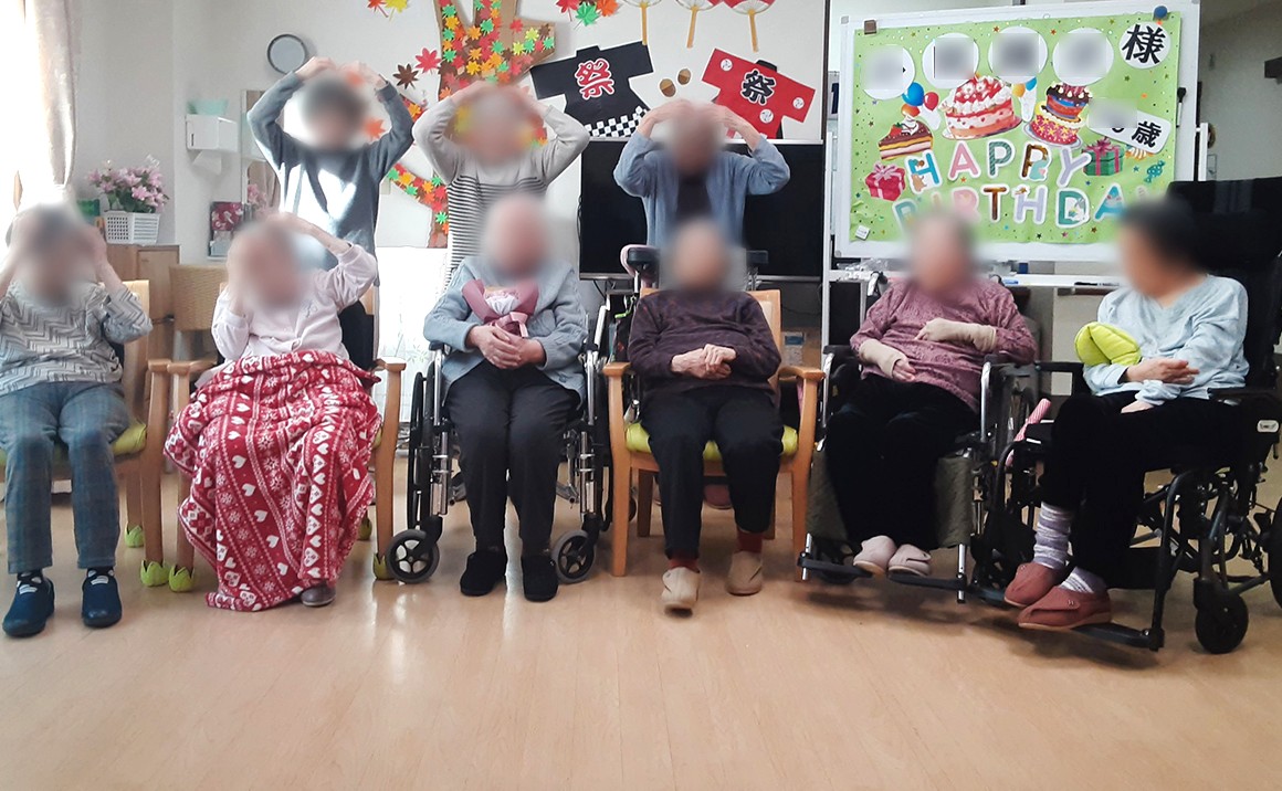 主役の利用者様は緊張の中にも笑顔が見られ、他の利用者様は