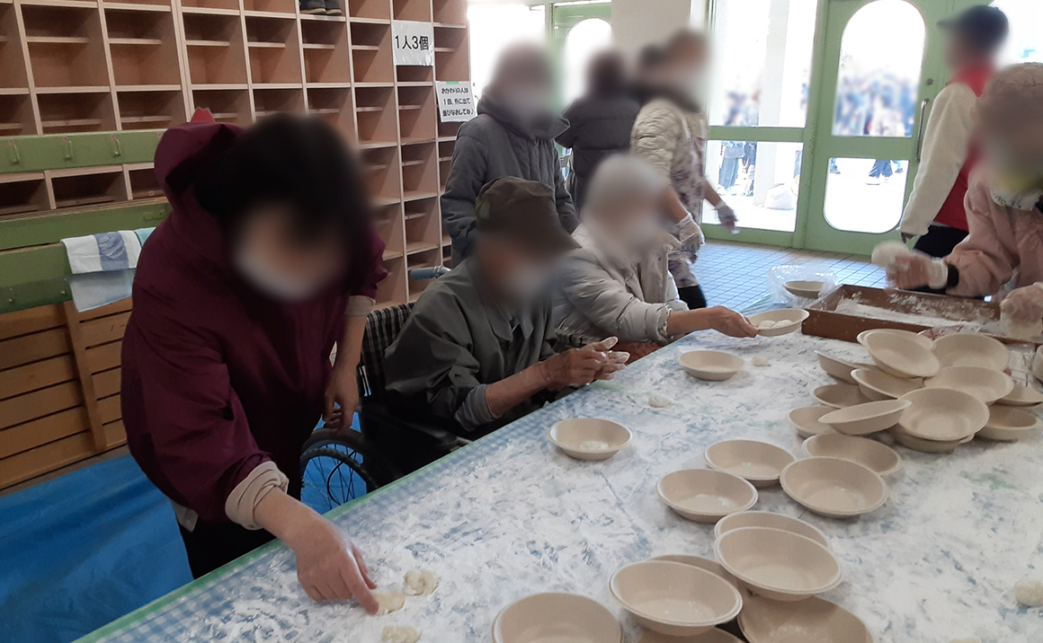 12月6日㈯ 摂陽小学校で開催された餅つき大会に、利用者様・家族様と参加させて頂きました。 本格的に、もち米を蒸し杵と臼でつくスタイルに「懐かしい。」の声があがっていました。 つきたての餅を丸める体験もさせて頂きました。 摂陽小学校の関係者の皆様ありがとうございました。 小さく小さくしたお餅でぜんざいを作り3時のおやつで召し上がって頂きました。