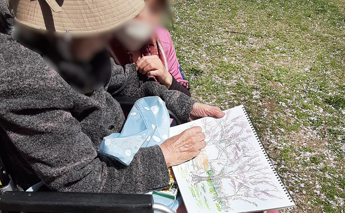 1階2階の合同で昆陽南公園まで車と車椅子で移動しました。