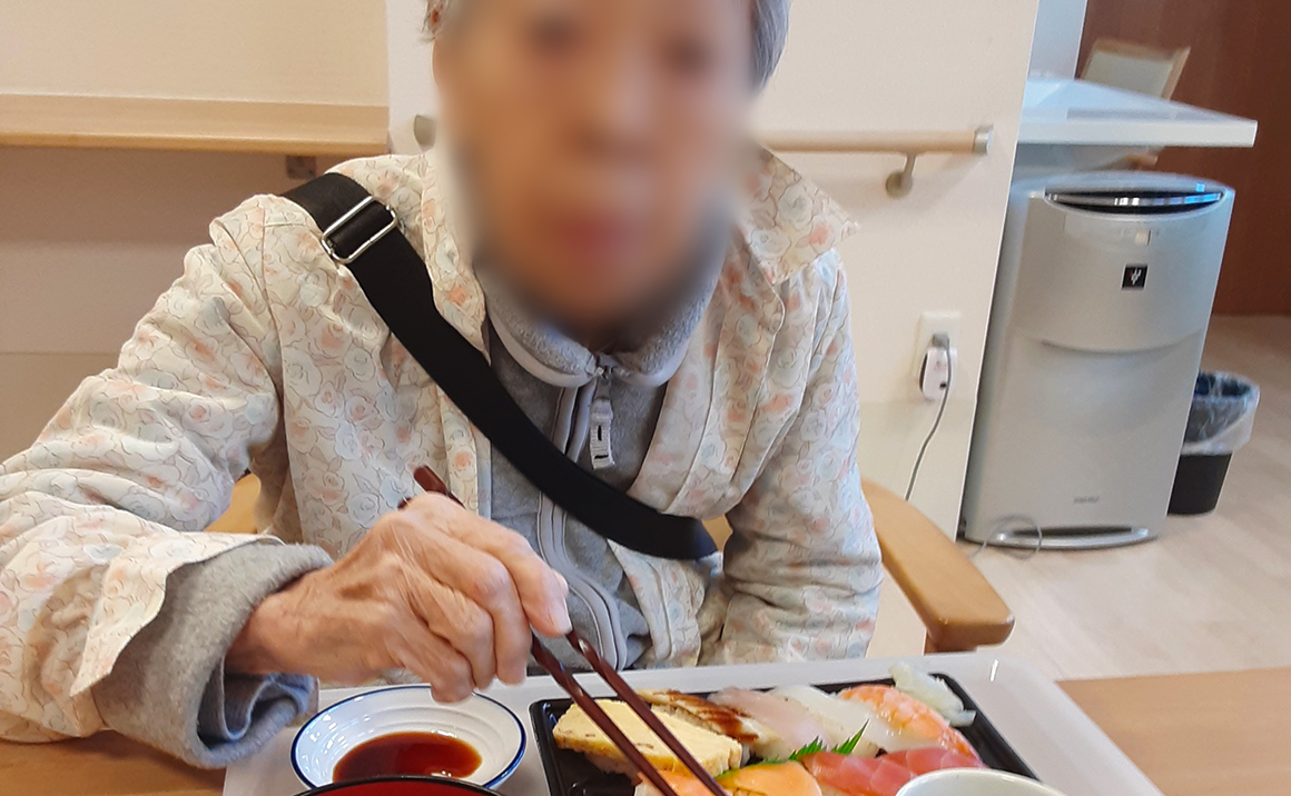 たのしい家吉祥院グループホーム1号館では、12月25日にクリスマスパーティーを行いました。 午前中にクリスマスソングを歌い、昼食に希望が多かった握り寿司を提供すると「美味しい」「久しぶり」と喜んで下さいました。 おやつの時間には、You-Tubeのクリスマスソングメドレーを見ながらチョコレートケーキを楽しみました。 皆さんたいへん喜んで頂きました。