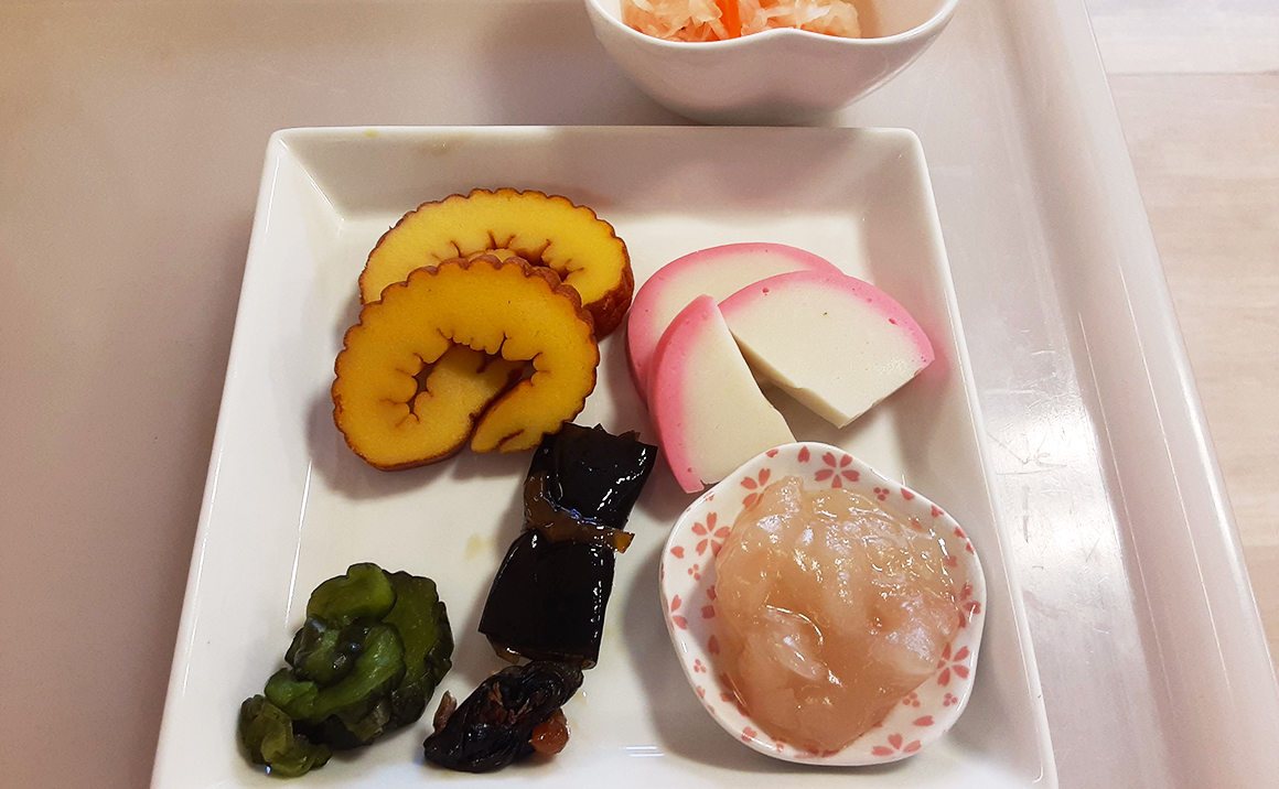 たのしい家吉祥院グループホーム1号館では、1月1日には簡単なお節料理風の昼食を楽しみました。 そして1月11日には鏡開きレクリエーションとしておやつの時間に白玉善哉を楽しんでいただきました。 特に善哉はたいへん好評で、皆さん喜んで下さいました。