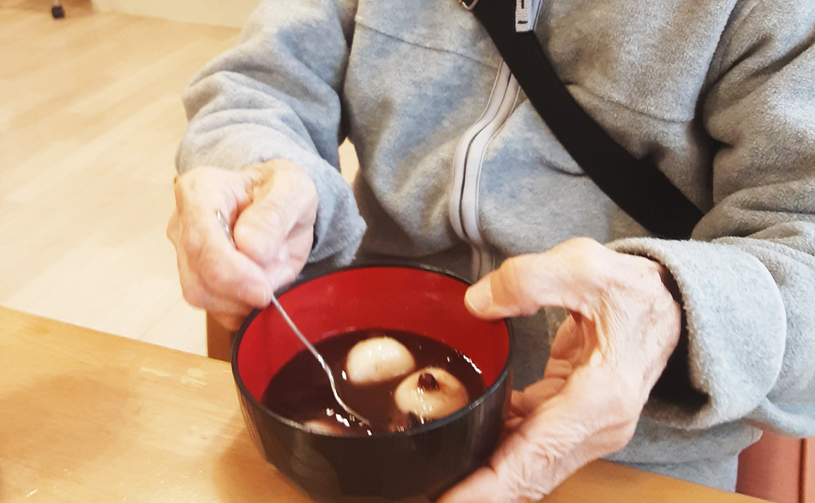 たのしい家吉祥院グループホーム1号館では、2月3日の節分に豆まきレクリエーションを楽しみました。 昼食は大豆ご飯、おやつには人気のお善哉を召し上がっていただきました。 お善哉はいつも好評を頂いています。