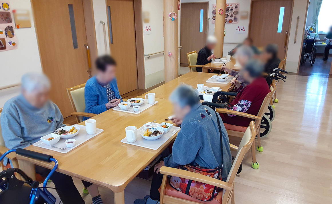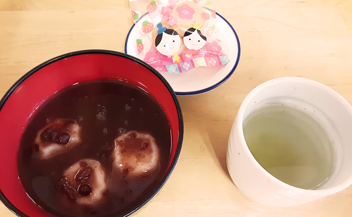 たのしい家吉祥院グループホーム1号館では、3月4日に雛祭りレクリエーションとして、昼食にチラシ寿司、おやつにぜんざいを提供し、召し上がっていただきました。 おぜんざいはいつも好評です。 おやつの前には雛祭りの歌でお祝いしました。