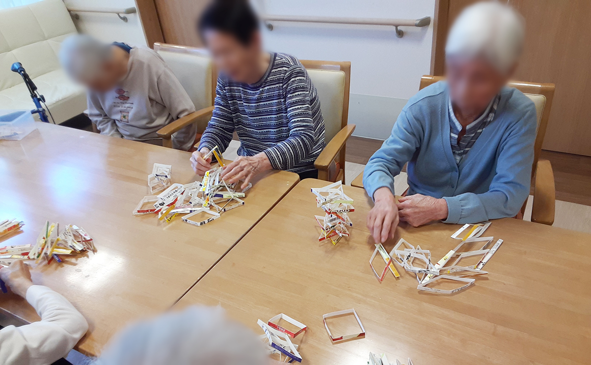 たのしい家吉祥院グループホーム1号館では、6月7日のランチに味彩御膳のレクリエーションを実施しました。 午後は紙の積み木を積み上げるグラグラタワー積み遊びで盛り上がり、おやつに水無月を召し上がっていただきました。 どちらも喜んで下さいました。
